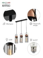 Характеристики Светильник подвесной (подвес) Rivoli Anemon 5062-233 3 х E27 40 Вт лофт — кантри: