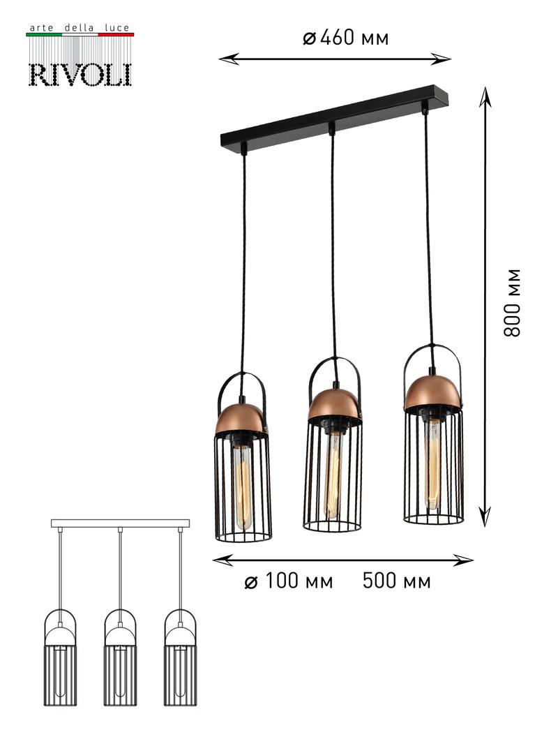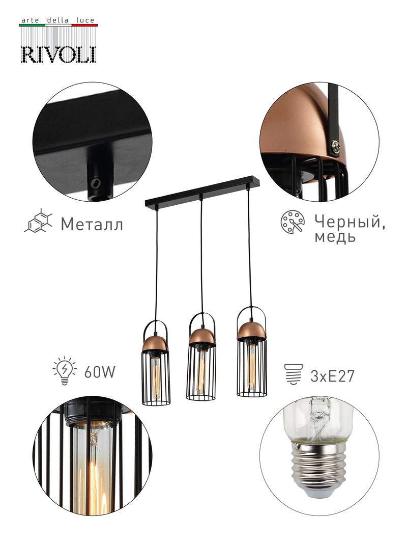 Характеристики Светильник подвесной (подвес) Rivoli Anemon 5062-233 3 х E27 40 Вт лофт — кантри: