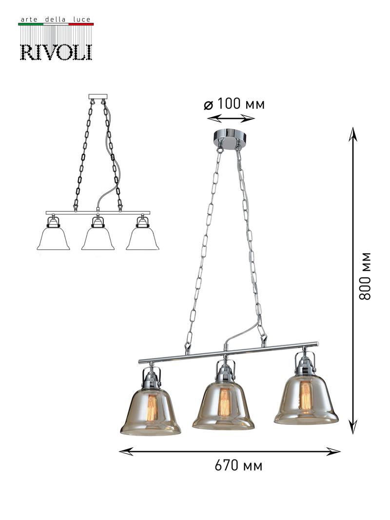 Характеристики Светильник подвесной (подвес) Rivoli Avrora 5055-203 3 х E27 40 Вт лофт — кантри: