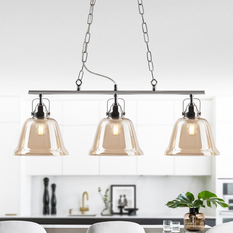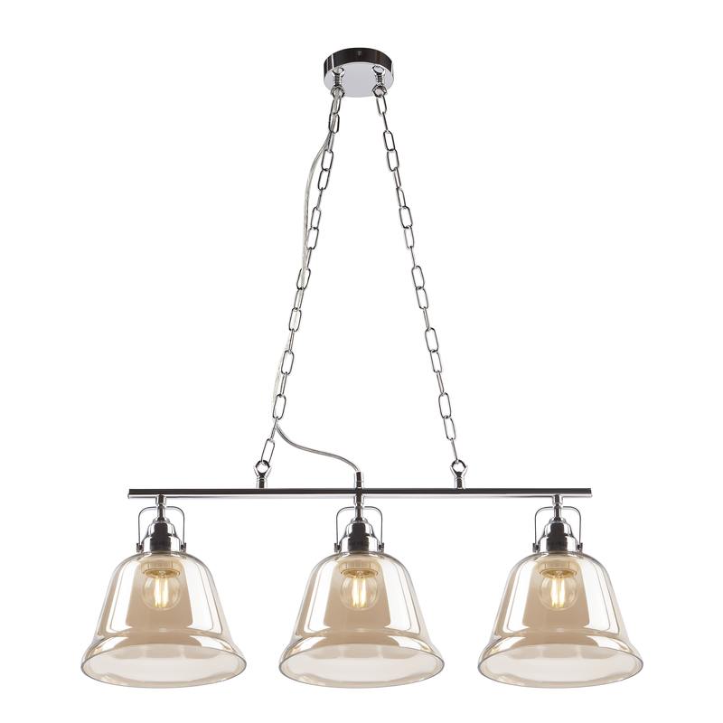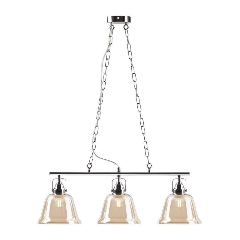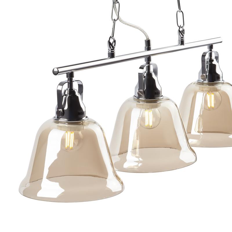 Оригинальные светильники с плафонами в форме колокольчика. Толстое дымчатое стекло отлично сочетается с хромированной арматурой и декоративной крепёжной фурнитурой. Своей формой эти светильники напоминают бутон цветка на стебле или уличные ретро-фонари. Создадут уютную атмосферу в гостиной, спальне, на кухне, в коридоре, столовой, студии. Помогут расставить в помещении световые акценты, разнообразить интерьер. Стильные, романтичные, практичные! Коллекция представлена подвесным светильником на 3 лампы.