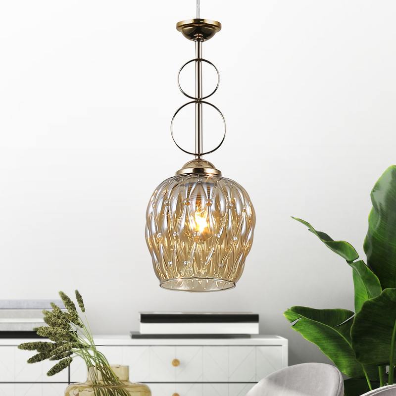 Rivoli Cindy (арт. 9119-201) — подвесной светильник металлический с выдувным стеклянным плафоном в виде цветочного бутона. Подвес применяется с одной лампой Е27 мощностью 40 Вт. Коллекция подвесов Cindy от итальянского бренда Rivoli дополнена моделью с 3 плафонами (арт. 9119-203) из качественного европейского стекла. Подвесные светильники Cindy Rivoli отличает декор в виде элегантных металлических колец и объёмный ромбовидный рисунок на тонированном стекле плафонов. Цвет арматуры – золото. Данные подвесные светильники на тросах выполнены в стиле модерн и хороши для интерьеров в стилях современная классика, восточный, эклектика.
