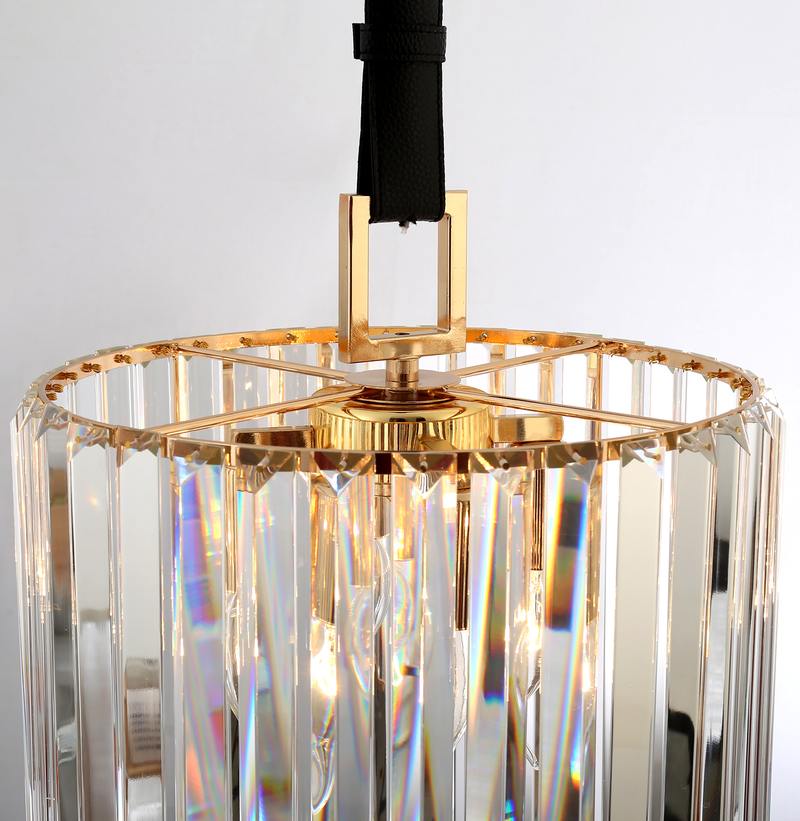 Серия Elisa от итальянского бренда Rivoli это современные хрустальные люстры с двумя формами абажуров: цилиндрическая на 4 лампы (арт. 3054-304) и шестиугольная на 6 ламп (арт. 3054-306). Подвесные люстры Elisa выполнены в стиле модерн и зачаровывают игрой света в крупных кристаллах, установленных во всю высоту абажура. Изюминкой выступает дизайнерский кожаный подвес черного цвета. Высота люстры на потолок Rivoli Elisa регулируется.