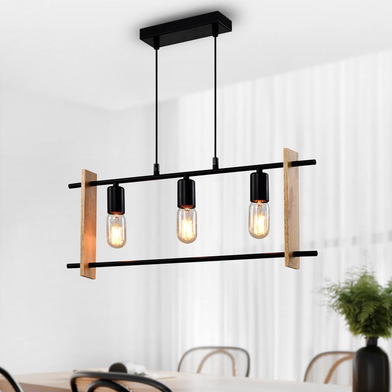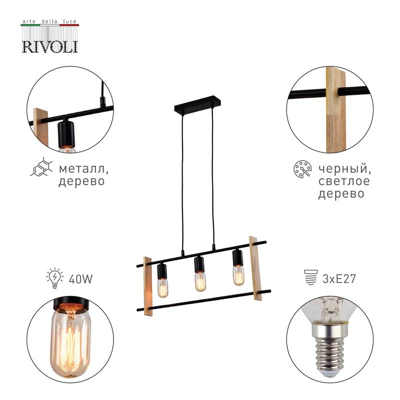 Rivoli Elizabeth (арт. 5107-203) – подвесной светильник на тросах в каркасном корпусе прямоугольной формы. Подвесная люстра под 3 лампы Е27 40 Вт регулируется по высоте подвеса через укорачивание тросов при монтаже светильника подвесного на потолок. Каркасные подвесные светильники Rivoli Elizabeth созданы итальянскими дизайнерами специально для актуального стиля лофт-кантри. Корпус подвесной люстры с открытыми источниками света представляет собой совокупность чёрных металлических реек и «дощечек» светлого дерева. Корпус люстры целиком изготовлен из металла – лёгкого и прочного. Такие светильники потолочные подвесные прослужат десятилетия.