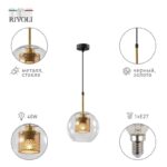 Rivoli Gertrude (арт. 4105-201) – светильник потолочный подвесной дизайнерский. Подвесной светильник на тросе с двухчастным оригинальным плафоном. Представляет подвесные светильники итальянского бренда Rivoli. Преимущество данного светильника подвесного на потолок – регулировка высоты троса. Такой подвесной потолочный светильник-подвес можно разместить как по центру комнаты в качестве люстры, так и как дополнительную подсветку – подвесной светильник над столом, подвесной светильник прикроватный, светильник подвесной у кровати, светильник подвесной над прикроватной тумбочкой, подвесной светильник-бра.
