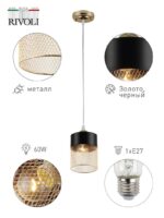 Характеристики Светильник подвесной (подвес) Rivoli Hulda 9068-201 1 х E27 60 Вт модерн: