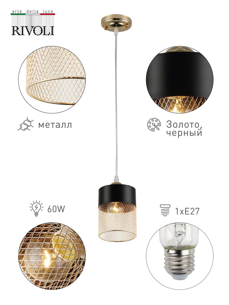 Характеристики Светильник подвесной (подвес) Rivoli Hulda 9068-201 1 х E27 60 Вт модерн: