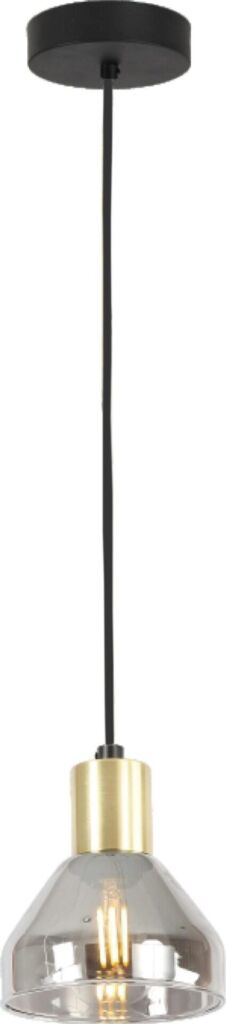 Rivoli Kassandra — дизайнерский светильник подвесной из металла и стекла. Диаметр плафона — 100 мм. Высота регулируется при монтаже. Стеклянный дымчатый плафон эффектно выглядит и смягчает световые блики. Основание светильника — черное, а плафон имеет декоративный патрон цвета "латунь". Подвесной светильник создан в соответствии с актуальными тенденциями дизайна интерьеров. Сочетание черного цвета и латуни находится на пике популярности.