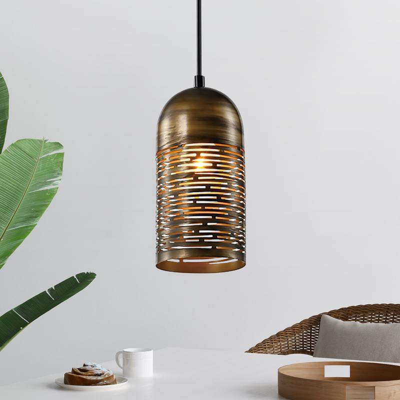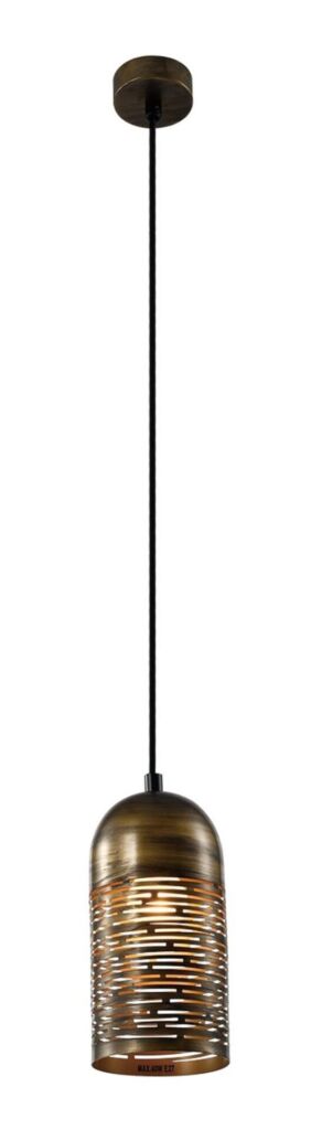 Светильник подвесной итальянского бренда Rivoli из коллекции Lamia, идеально подходящей для стилей модерн, лофт, кантри, восточный, ретро. Подвесной светильник Lamia Rivoli имеет 1 металлический плафон с декоративной перфорацией в виде тонких горизонтальных линий. Цвет светильника потолочного подвесного Lamia — коричневый с эффектом патины. Подвесные светильники Rivoli Lamia на тросах регулируются по высоте в процессе установки. Лампы для данных подвесных светильников над столом — Е27 мощностью 40 Вт. Великолепным решением для кухни станут такие подвесные светильники из металла. Светильники потолочные подвесные — важный атрибут современного дизайна интерьеров. Подвесные светильники на тросах Rivoli Lamia помогут поделить большое пространство на функциональные зоны, поэтому удачны для квартиры-студии или загородного дома.
