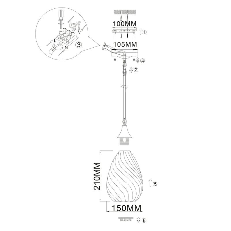 Характеристики Светильник подвесной (подвес) Rivoli Lily 9122-201 1 х Е27 40 Вт модерн потолочный: