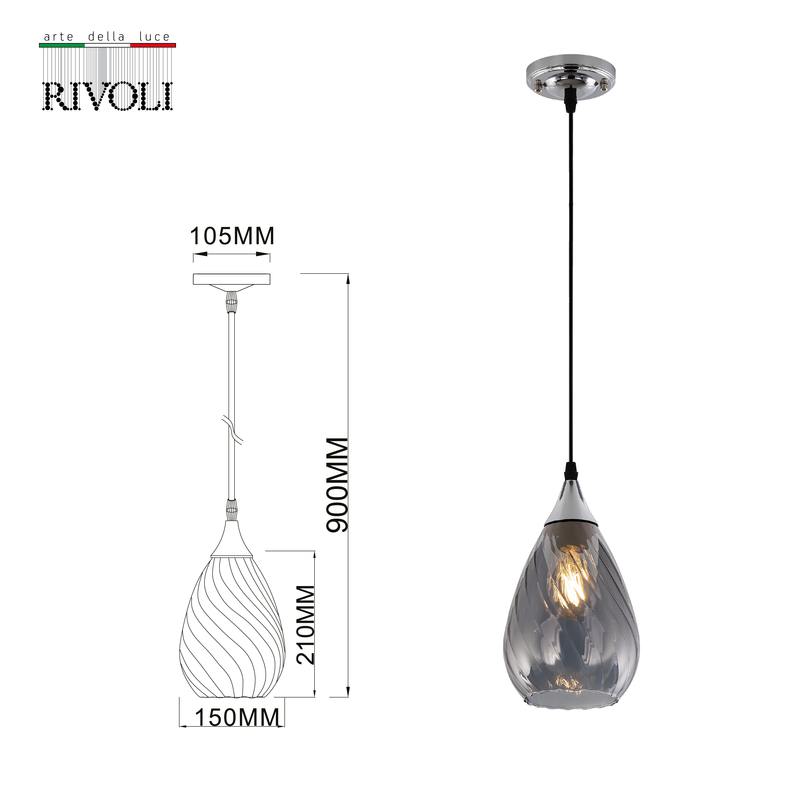 Rivoli Lily (арт. 9122-201) — подвесной светильник с хромированным металлическим основанием и 1 фигурным плафоном из дымчатого стекла. Светильники потолочные подвесные Lily созданы итальянским брендом Rivoli в популярном стиле модерн. Стекло плафонов закалено. Такие подвесные светильники станут превосходным решением для размещения над столом или барной стойкой. Высоту троса плафона можно отрегулировать при монтаже. Если вы ищете подвесные светильники для кухни или подвесные светильники в прихожую, стоит заказать эту оригинальную стильную модель. Lily Rivoli — подвесные светильники на надежных тросах. Рекомендуемые источники света — Е27 мощностью 40 Вт. Один светильник подвесной Lily хорошо подсвечивает площадь 3 м2. Дымчатый стеклянный плафон в форме капли смягчают яркость светового потока, делая освещение комфортным для глаз.