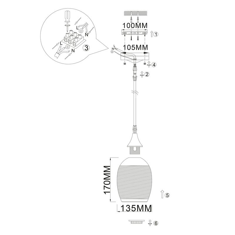 Характеристики Светильник подвесной (подвес) Rivoli Malady 9123-201 1 х Е27 40 Вт модерн потолочный: