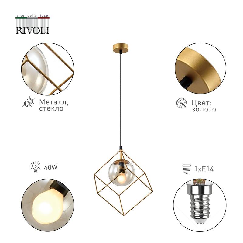 Характеристики Светильник подвесной (подвес) Rivoli Moon 5145-310 1 х Е14 40 Вт золото лофт — кантри потолочный: