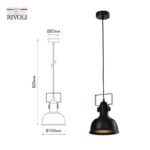 Rivoli Nathalie подвесной светильник из металла, выполненный в эффектном сочетании черного и золотого цветов. Идеальное решение для стиля лофт. Закрытый плафон создает яркий направленный свет. Наклон плафона регулируется и фиксируется дизайнерскими шурупами.