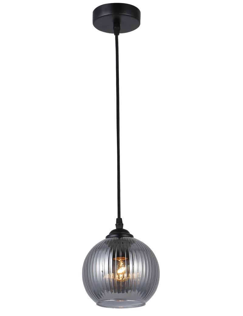 Rivoli Sophie (арт. 9319-201) – светильник подвесной в стиле модерн. Подвес предполагает регулировку высоты при монтаже подвесной люстры на потолок. Светильники подвесные потолочные – актуальный тренд дизайна интерьеров. Данный подвесной потолочный светильник отличается стеклянным дымчатым плафоном округлой формы. Стекло плафона декорировано вертикальными полосами. Основание люстры подвесной круглое, цвет окрашивания – чёрный матовый. Подвес Rivoli Sophie применяется с лампой Е27 40 Вт. Подвесной светильник-люстра – стильное и практичное решение для кухни. Подвесной светильник чаще всего монтируется над столом.
