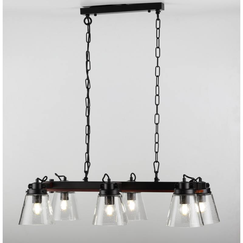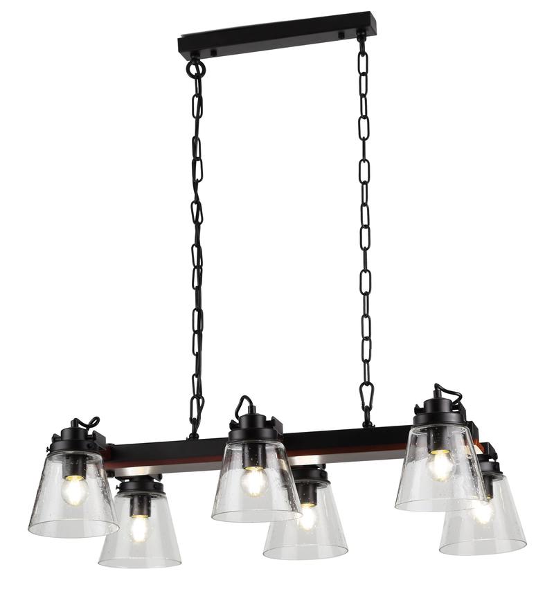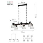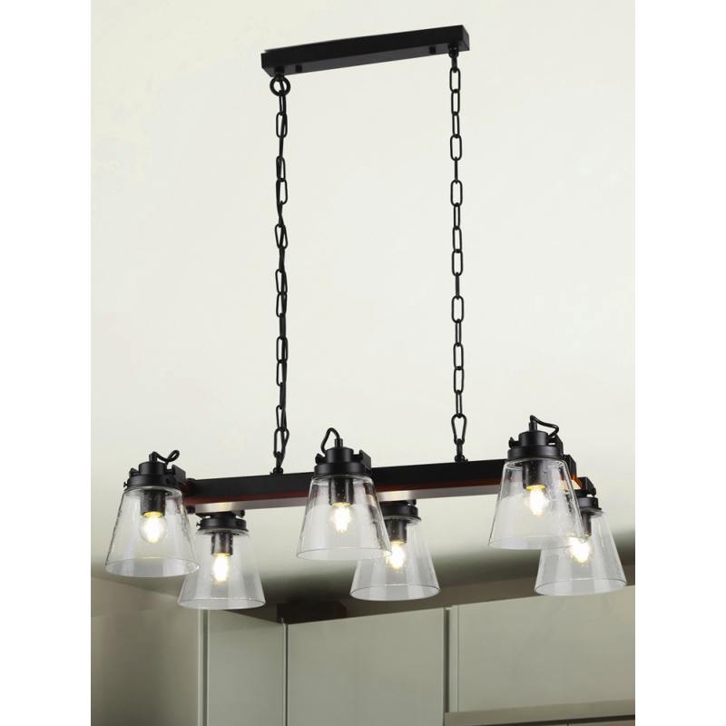 Rivoli Spartacus итальянская коллекция современных люстр из дерева, металла и стекла. Такие люстры помогут создать эффектный интерьер в стиле лофт, кантри. Данная модель имеет 6 стеклянных плафонов под лампы Е27 60 Вт. Высота подвеса люстры на потолок Spartacus регулируется.