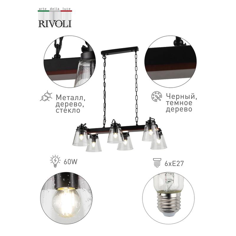 Характеристики Светильник подвесной (подвес) Rivoli Spartacus 5017-206 6 x E27 60 Вт лофт — кантри уценка: