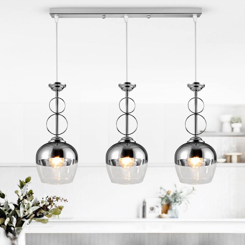 Rivoli Yasmin – светильники потолочные подвесные с 3 плафонами (арт. 9109-203). Выполнены в стиле модерн и имеют оригинальный декор тросов. Прозрачные стеклянные плафоны аккуратной классической формы в верхней части хромированы. Хром – один из самых популярных оттенков в современных интерьерах. Подвесной светильник Yasmin создан итальянским брендом Rivoli и относится к серии «Лайт», которая предлагает дизайнерское освещение по доступным ценам. Если вы ищете подвесные светильники для кухни, подвесные светильники в квартиру-студию – вы на верном пути! Коллекцию Rivoli Yasmine дополняют подвесные светильники на тросах под 1 лампу — арт. 9109-201. Подвесные светильники Yasmin выбирают профессиональные дизайнеры интерьеров для размещения над столом, в гостиных, над кухонными островками. Подвесной светильник-люстра – эффективное решение для преображения пространства!