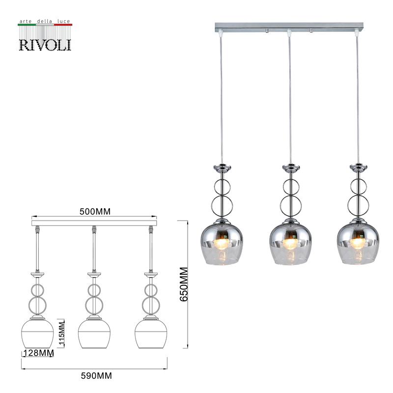 Характеристики Светильник подвесной (подвес) Rivoli Yasmin 9109-203 3 * Е27 60 Вт модерн потолочный: