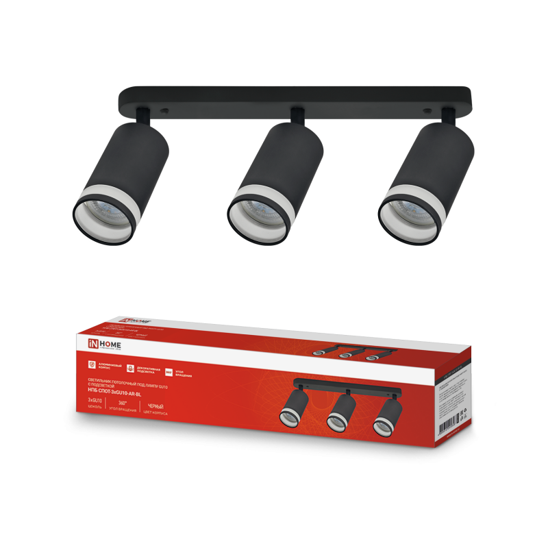 Характеристики Светильник потолочный НПБ СПОТ-3xGU10-AR-BL под лампу GU10 56х165×350мм черный IN HOME: