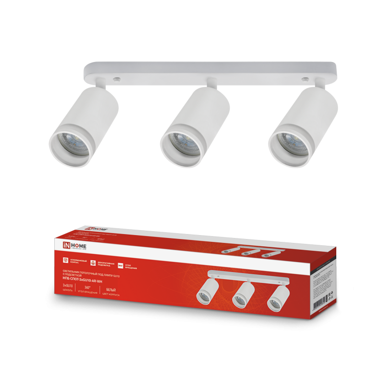 Характеристики Светильник потолочный НПБ СПОТ-3xGU10-AR-WH под лампу GU10 56х165×350мм белый IN HOME: