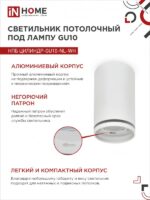 Характеристики Светильник потолочный НПБ ЦИЛИНДР-GU10-NL-WH под лампу GU10 55х100мм белый IN HOME:
