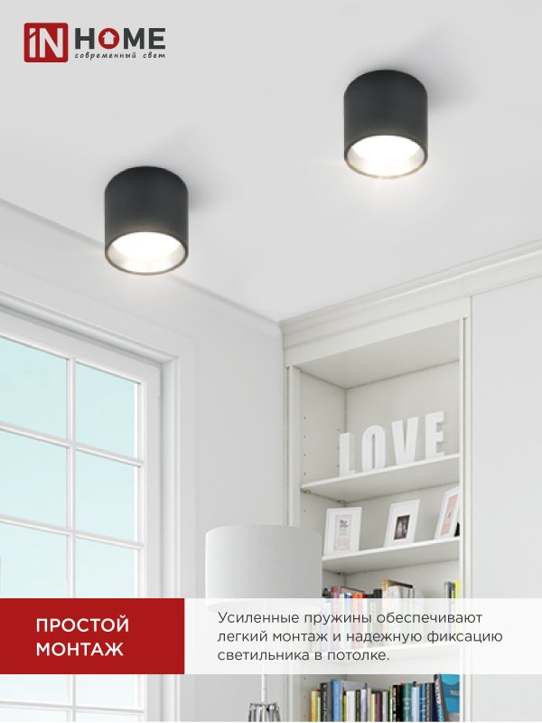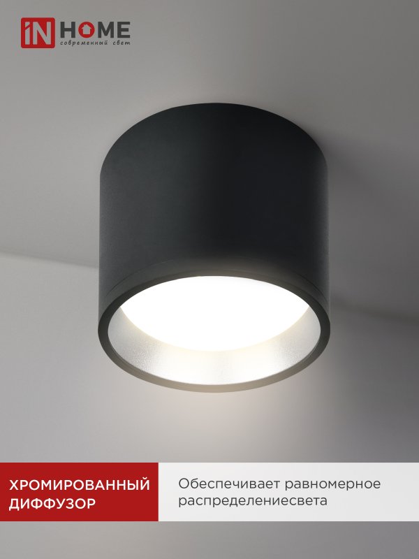 Характеристики Светильник потолочный НПБ ЦИЛИНДР GX53-CH/BL под лампу GX53 95х80мм черный/хром IN HOME: