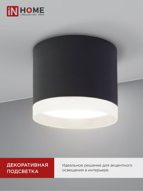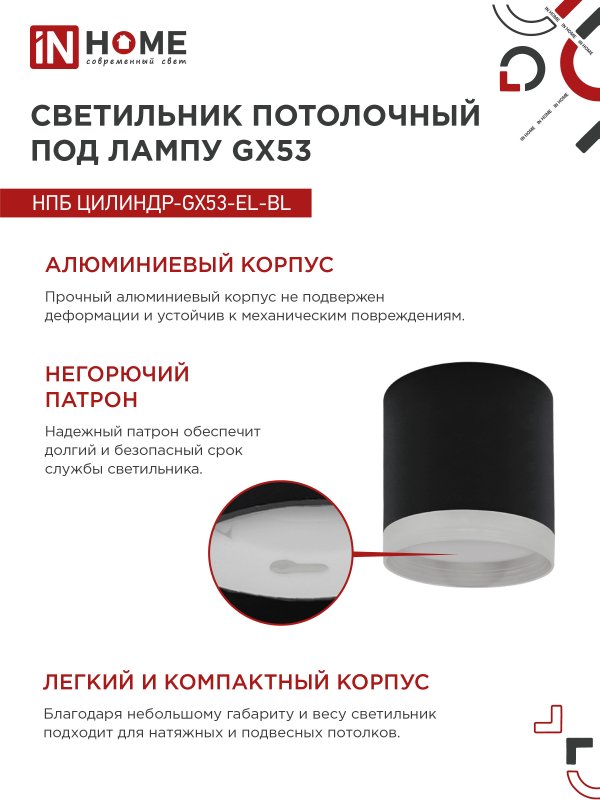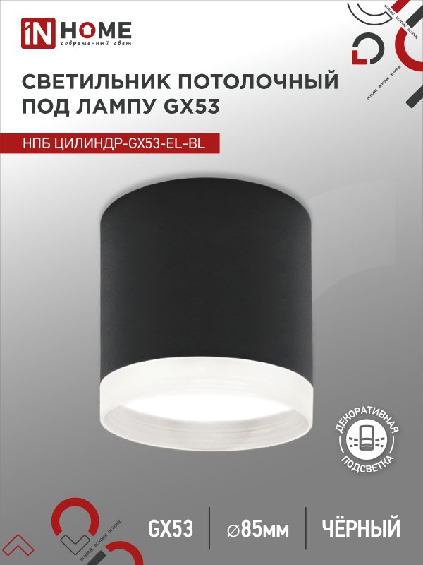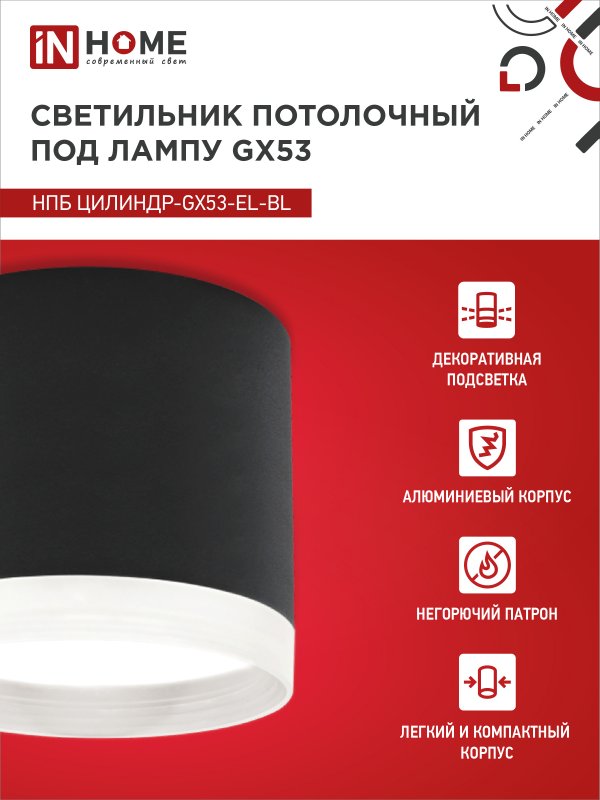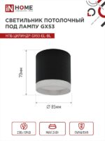 Характеристики Светильник потолочный НПБ ЦИЛИНДР-GX53-EL-BL под лампу GX53 85х70мм черный IN HOME: