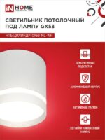 Характеристики Светильник потолочный НПБ ЦИЛИНДР-GX53-NL-WH под лампу GX53 82х80мм белый IN HOME: