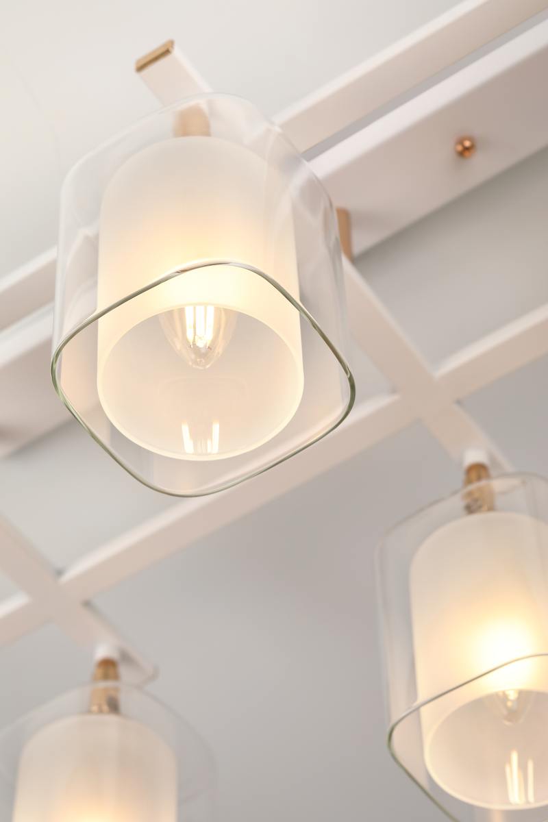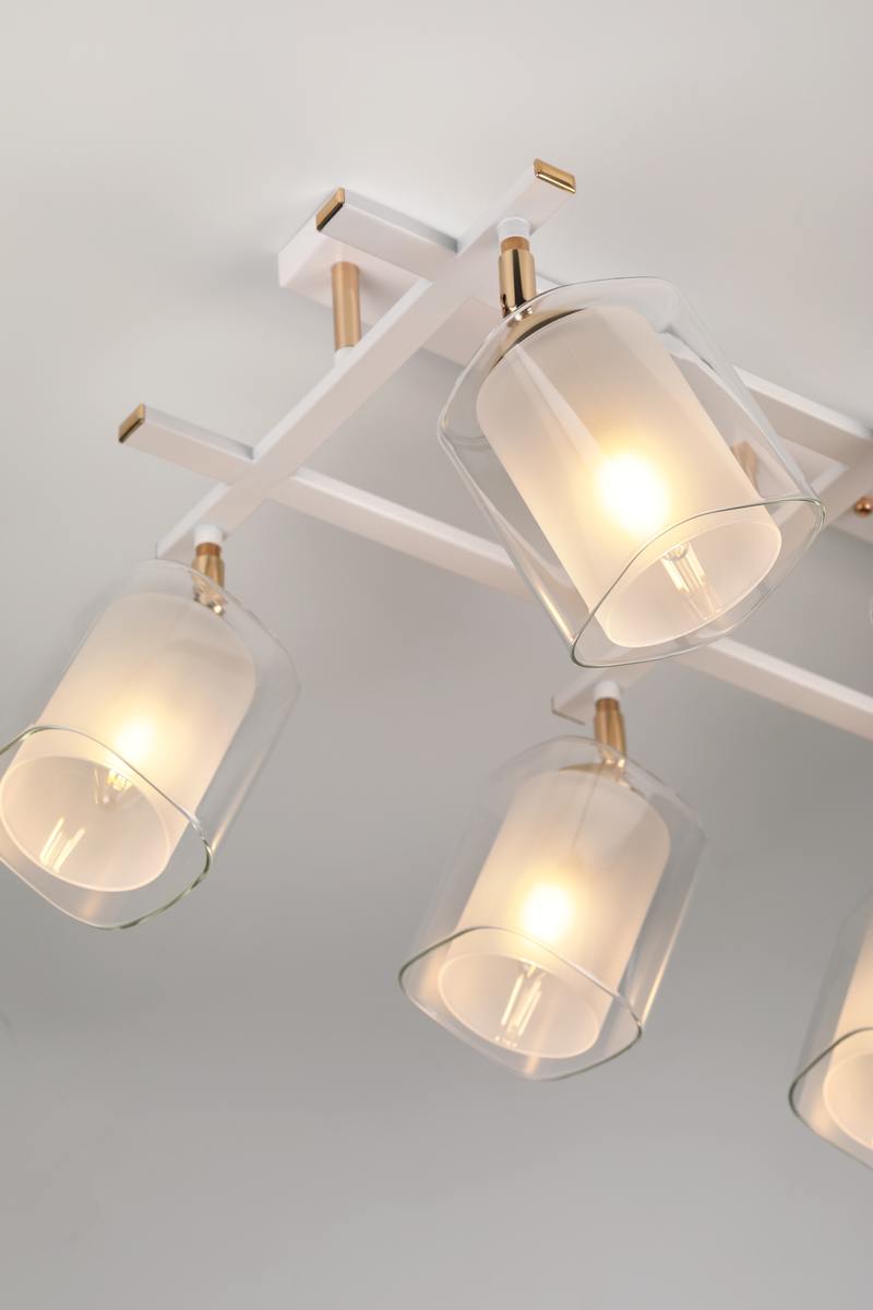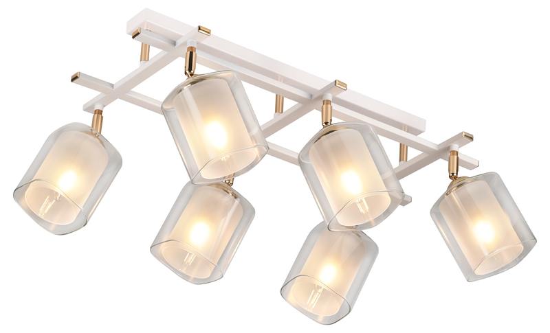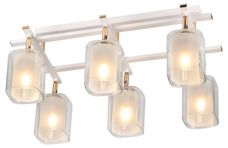 Белые люстры на потолок Helga от итальянских дизайнеров бренда Rivoli имеют 6 оригинальных плафонов. Внешняя часть каждого плафона выполнена из прозрачного стекла, а внутренняя из матового. Такая двухкомпонентная композиция придает этим современным люстрам оригинальность, делает их свет равномерным и мягким.