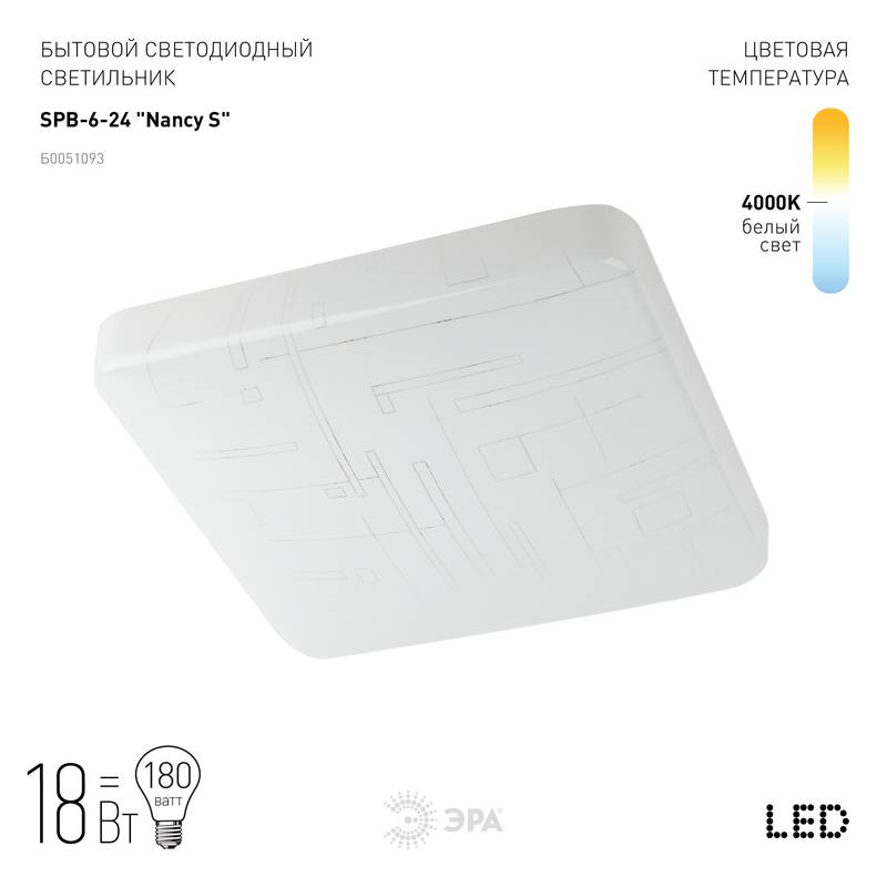 Характеристики Светильник потолочный светодиодный ЭРА Классик без ДУ SPB-6-24 Nancy S 24Вт 4000K квадратный:
