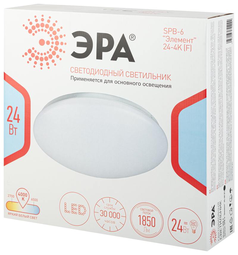 Характеристики Светильник потолочный светодиодный ЭРА Классик без ДУ SPB-6 Элемент 24-4K (F) 24Вт 4000К 1850Лм: