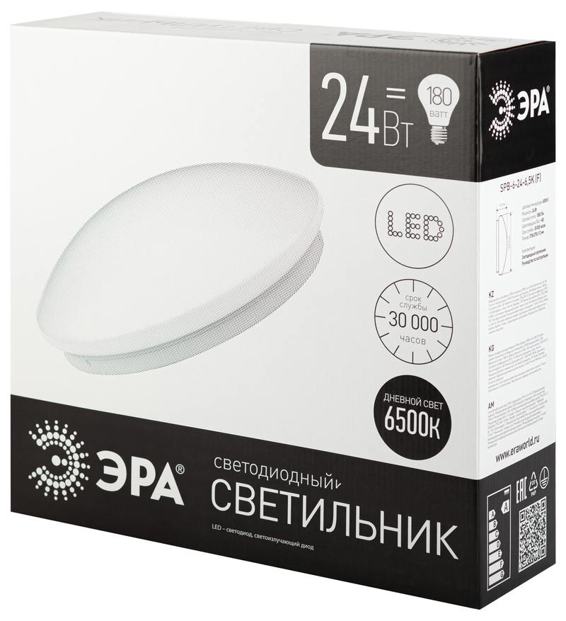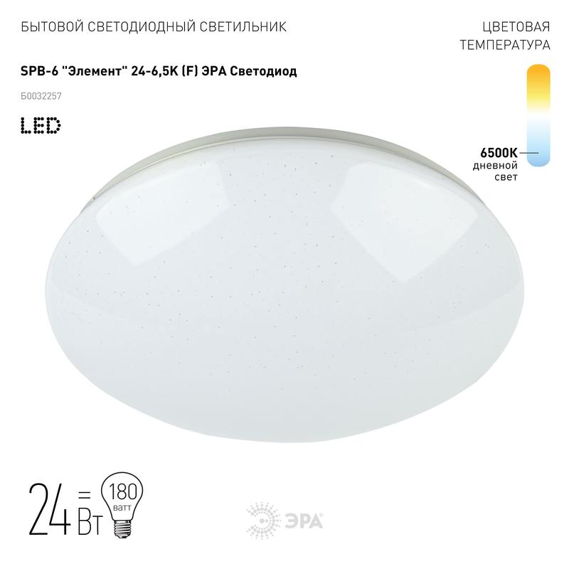 Характеристики Светильник потолочный светодиодный ЭРА Классик без ДУ SPB-6 Элемент 24-6,5K (F) 24Вт 6500К 1850лм: