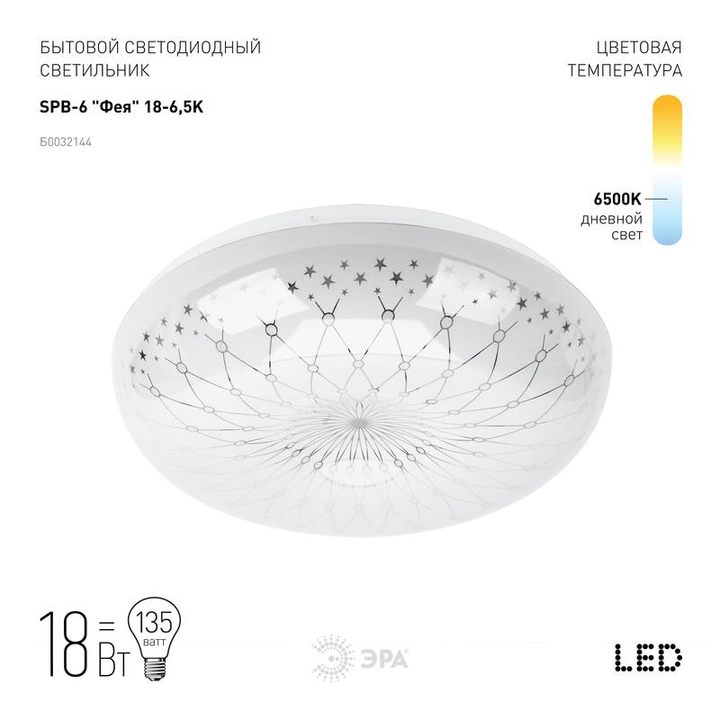 Характеристики Светильник потолочный светодиодный ЭРА Классик без ДУ SPB-6 Фея 18-6,5K 18Вт 6500K 1400Лм: