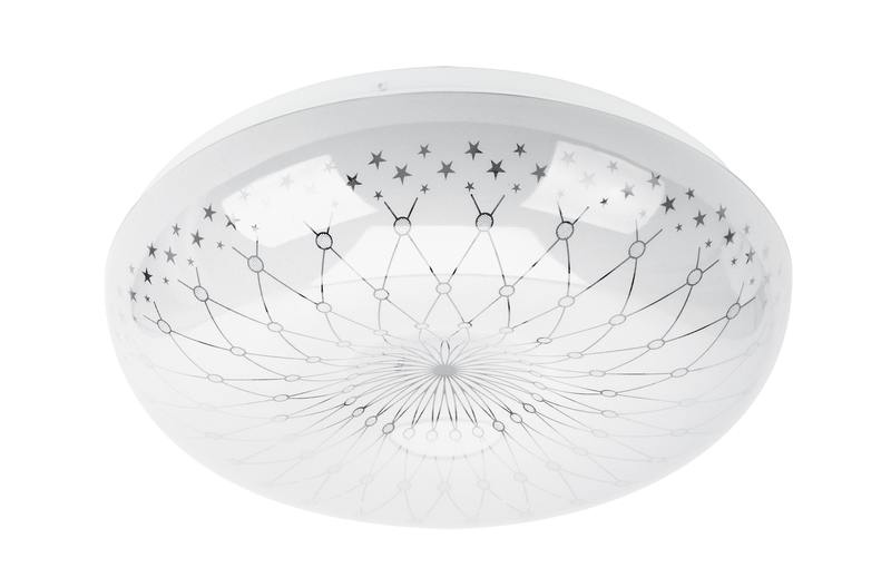 Изумительный дизайн плафона поможет создать атмосферу уюта и волшебства в Вашем доме. Узор из сплетающихся в сетку линий прекрасно сочетается с круглым плоским корпусом. Крохотные звезды, разбросанные по окружности рассеивателя, придают светильнику динамики. Такая LED люстра идеально подойдет для оформления детской, гостиной или спальни.