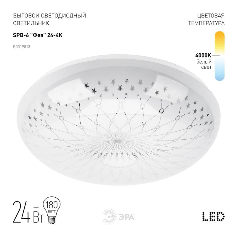 Характеристики Светильник потолочный светодиодный ЭРА Классик без ДУ SPB-6 Фея 24-4K 24Вт 4000K 1850Лм: