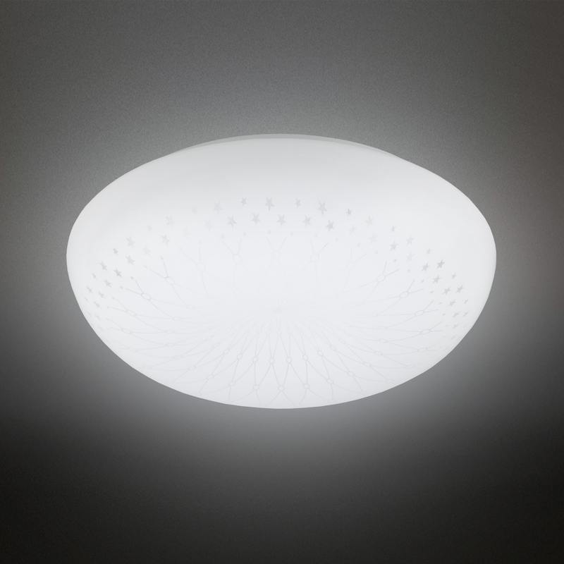 Восхитительный дизайн плафона создаст приятную обстановку в Вашем доме. Узор из переплетающихся линий прекрасно сочетается с круглым плоским корпусом. Крохотные звезды, разбросанные по окружности рассеивателя, придают светильнику динамики. Такая LED люстра идеальна для оформления света детской, гостиной или спальне.