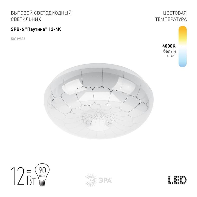 Характеристики Светильник потолочный светодиодный ЭРА Классик без ДУ SPB-6 Паутина 12-4K 12Вт 4000K 960Лм: