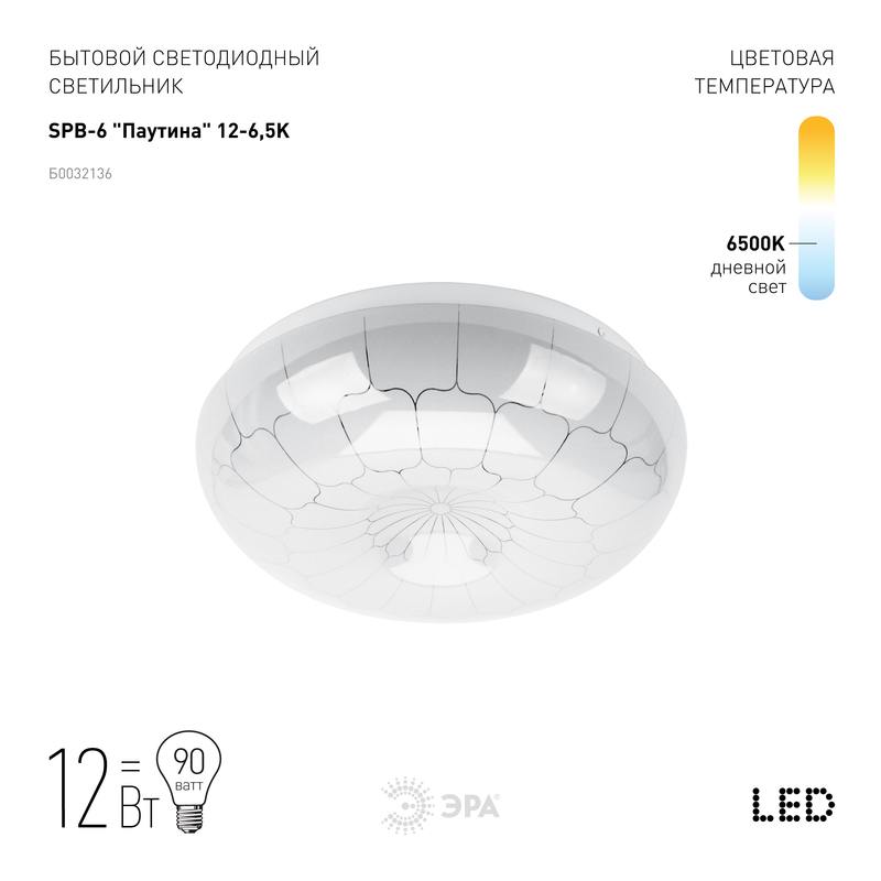 Характеристики Светильник потолочный светодиодный ЭРА Классик без ДУ SPB-6 Паутина 12-6,5K 12Вт 6500K 960Лм: