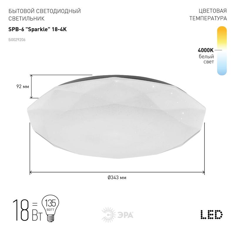 Характеристики Светильник потолочный светодиодный ЭРА Классик без ДУ SPB-6 Sparkle 18-4K 18Вт 4000К 1260Лм: