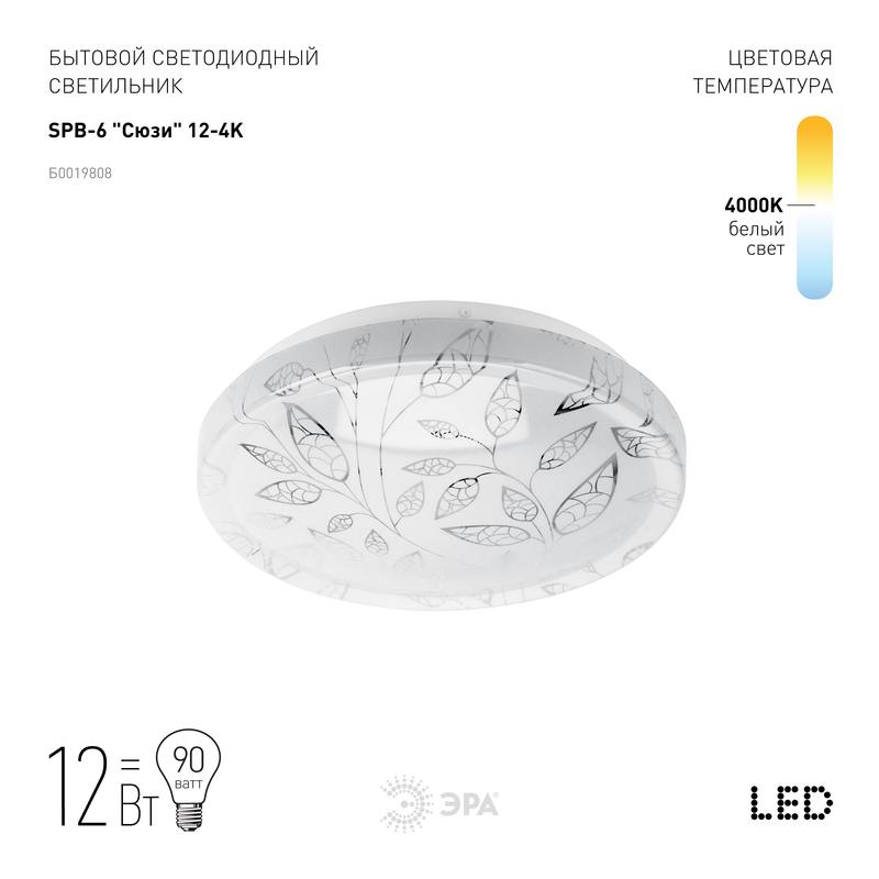 Мощность в 12 Вт и срок службы в 30 000 часов подарят долгую работу SPB-6 "Сюзи". Люстра от производителя ЭРА правильный выбор для Вашего дома!