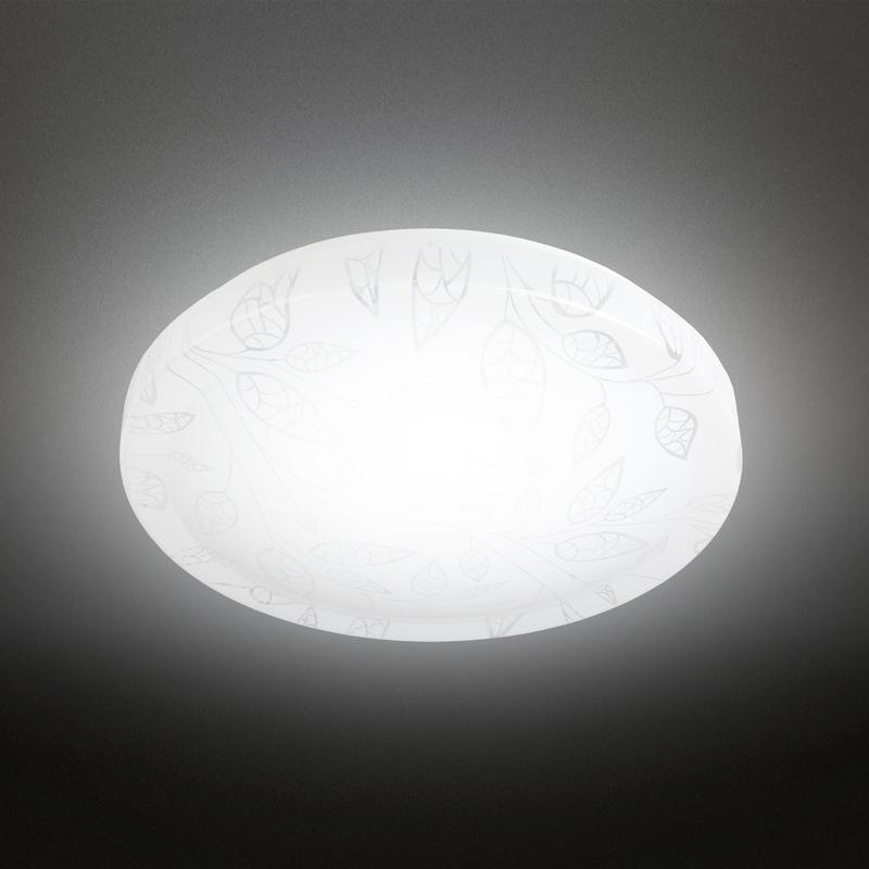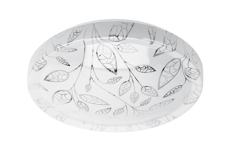Электросветильник имеет приятный дизайн плафона. Хаотичные ветки с узорчатыми лепестками "перекликаются" друг с другом. Узор гармонично сочетается с круглым корпусом. Такая люстра будет отлично смотреться в гостиной, на кухне, в спальне или детской.