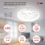 Характеристики Светильник потолочный светодиодный ЭРА Классик без ДУ SPB-6 Сюзи 18-4K 18Вт 4000K 1400Лм: