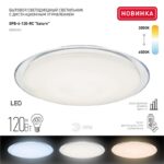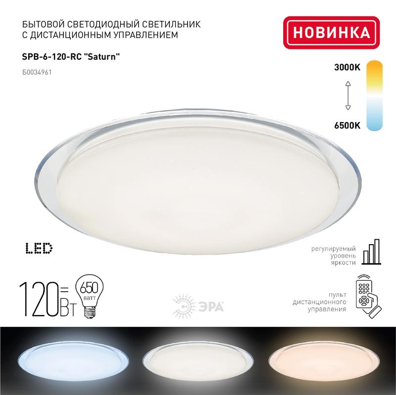 Характеристики Светильник потолочный светодиодный ЭРА Классик с ДУ SPB-6-120-RC Saturn 120Вт 3000-6500К 10200Лм прозрачный кант: