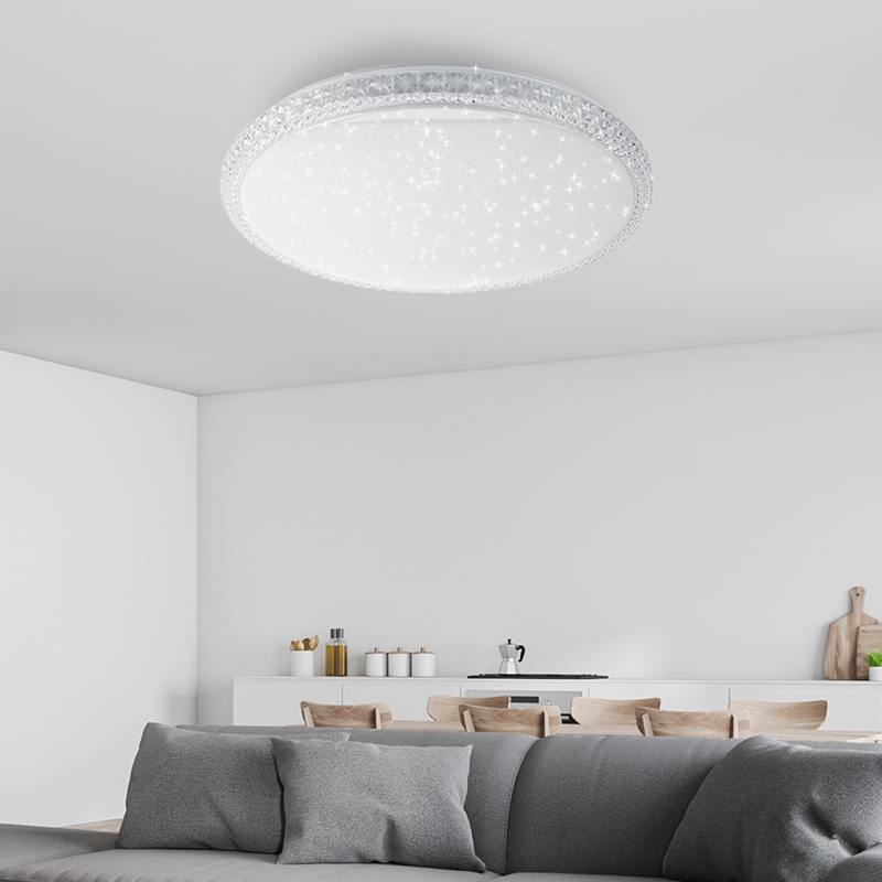Главной особенностью электросветильника является возможность управления пультом. Такая функция сильно облегчает процесс эксплуатации. Вы также можете регулировать диапазон цветовой температуры от 3000 до 6500 К.