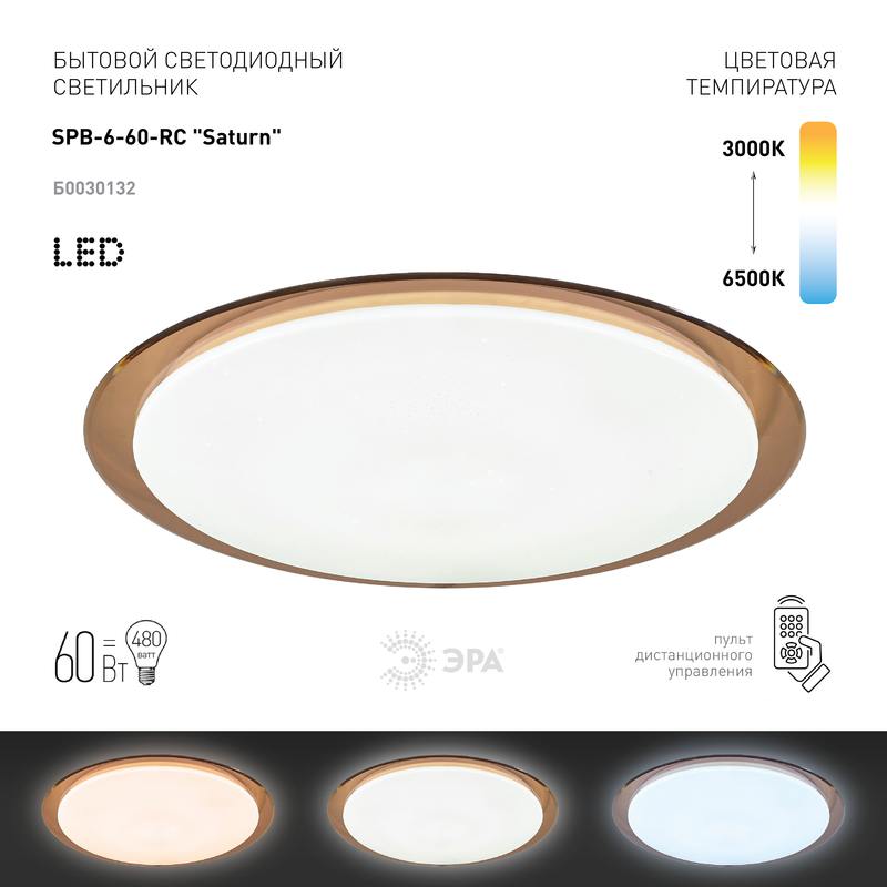 Характеристики Светильник потолочный светодиодный ЭРА Классик с ДУ SPB-6-60-RC Saturn 60Вт 3000-6500К 4800Лм коричневый кант: