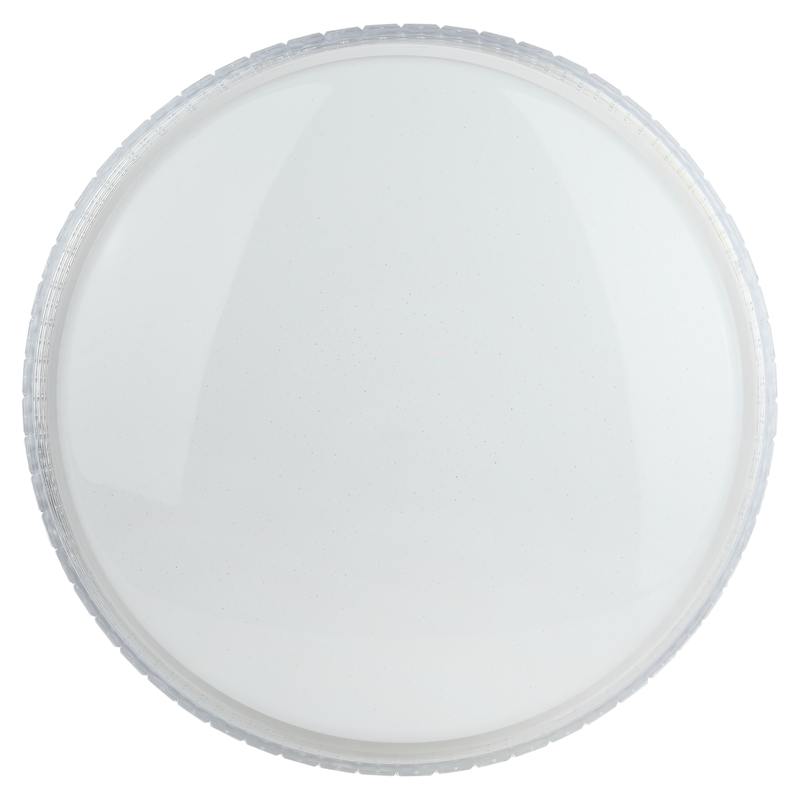 Светильник светодиодный потолочный ЭРА SPB-6-70-RC серии LIM отличается возможностью регулирования яркости светового потока и цветовой температуры. Пульт дистанционного управления имеет крупные кнопки с подсказками, очень удобен в использовании. Светильник можно расположить в уютной гостиной и менять яркость освещения в зависимости от настроения или необходимости. Цветовая температура регулируется в пределах от 3000 К до 6000 К. Диаметр корпуса составляет 51 см. Светодиодный светильник выполнен в классическом дизайне. На стальном корпусе располагается светодиодная плата, оснащенная современным и надежным драйвером. Матовый рассеиватель имеет декор, напоминающий звездное небо, он обрамлен прозрачным элементом "под хрусталь". Подобная конструкция выглядит особенно выразительно в темное время суток, создавая уютную атмосферу с эффектным свечением вокруг корпуса лампы.