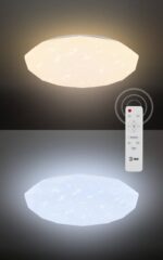Вместе с потолочным светильником идет пульт управления, с помощью которого Вы легко выберете нужную яркость, цветовую температуру или время отключения (30 мин или 1 ч). Эффектный потолочный светильник работает на светодиодах, которые снижают нагрузку на электросеть и не требуют замены.