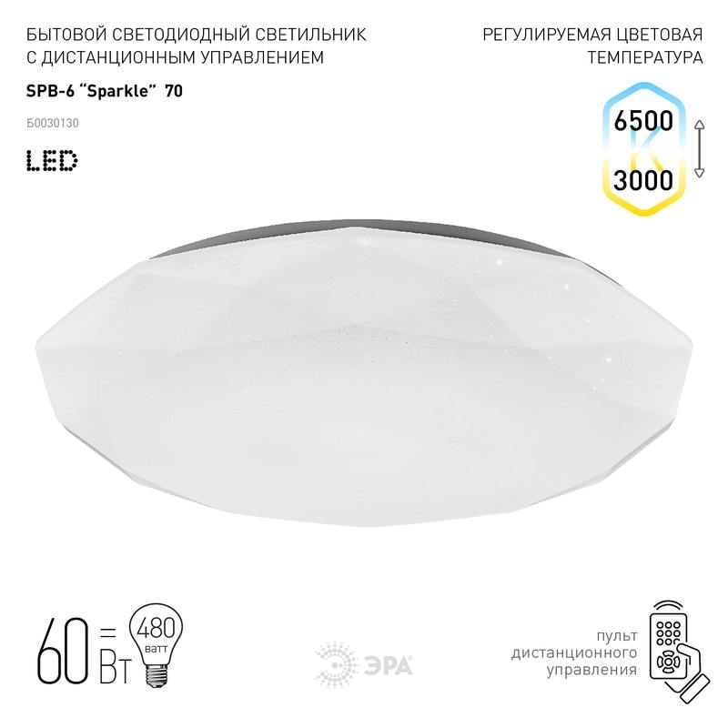 Характеристики Светильник потолочный светодиодный ЭРА Классик с ДУ SPB-6-70-RC Sparkle 70Вт 3000-6500К 5950Лм:
