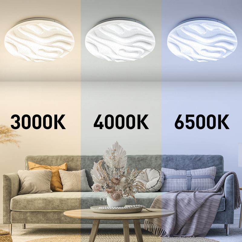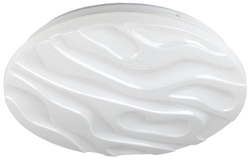Особенный дизайн плафона в виде рельефных волн гармонично сочетается с круглым корпусом. Изюминка LED светильника эффект звездного неба! Хаотичное мерцание поможет создать романтичную атмосферу в спальне, добавить волшебства детской и разнообразить гостиную.