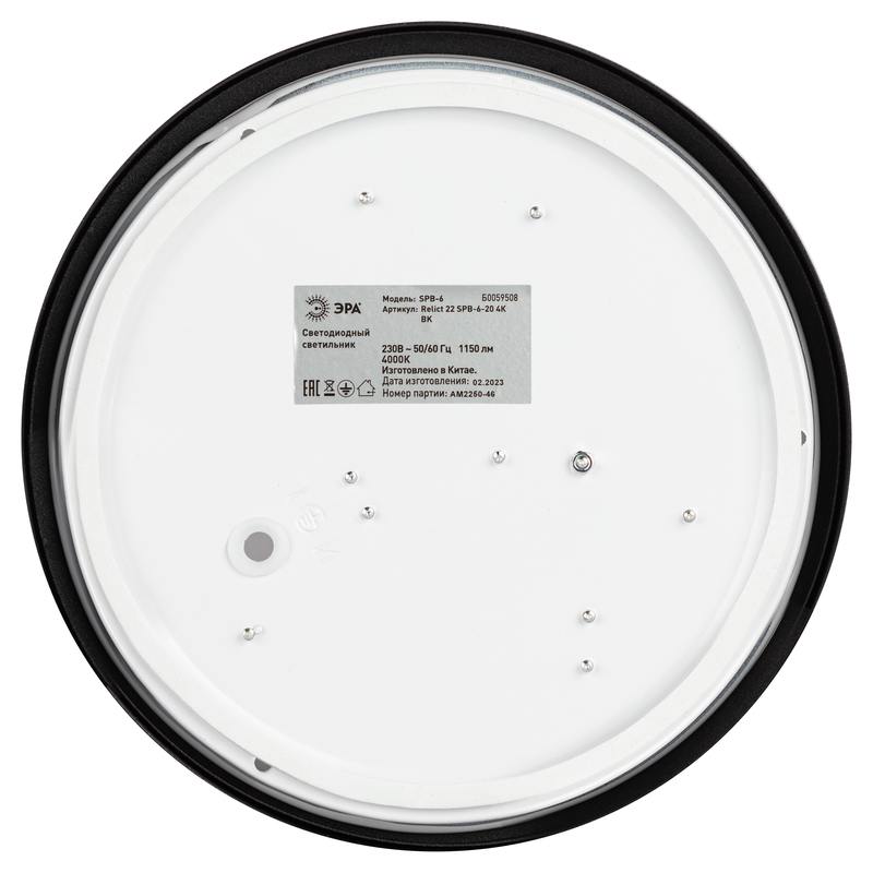 Характеристики Светильник потолочный светодиодный ЭРА Relict 22 SPB-6-20 4К BK 20W 4000K Черный: